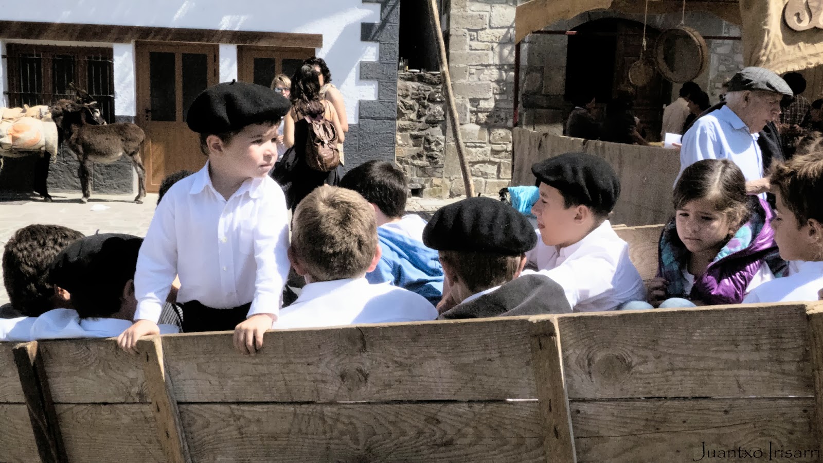 El programa comienza con el bandeo de campanas que anuncia la puesta en marcha de todas las actividades. Mientras recorremos las calles del pueblo tenemos la oportunidad de ver escenas de la matanza del cerdo, beatas rezando en la iglesia, lavanderas haciendo la colada en el río; los niños por un lado y las niñas por otro, ataviados a la antigua usanza y acudiendo a la escuela por separado como mandaba la tradición. Vemos también a las mujeres haciendo cordeles de bainetas o alubias verdes; al ganadero elaborando queso; a las hilanderas afanadas en el proceso de elaboración de hilos de lana; a las colchoneras 'axotando' o vareando la lana destinada a rellenar los colchones; al notario documentando las peticiones de un cliente; a los cortadores de troncos haciendo tablones con la sierra en posición vertical, y a los herreros forjando el hierro en la fragua con un curioso y viejo fuelle, martilleando sin cesar el metal para darle la forma deseada.